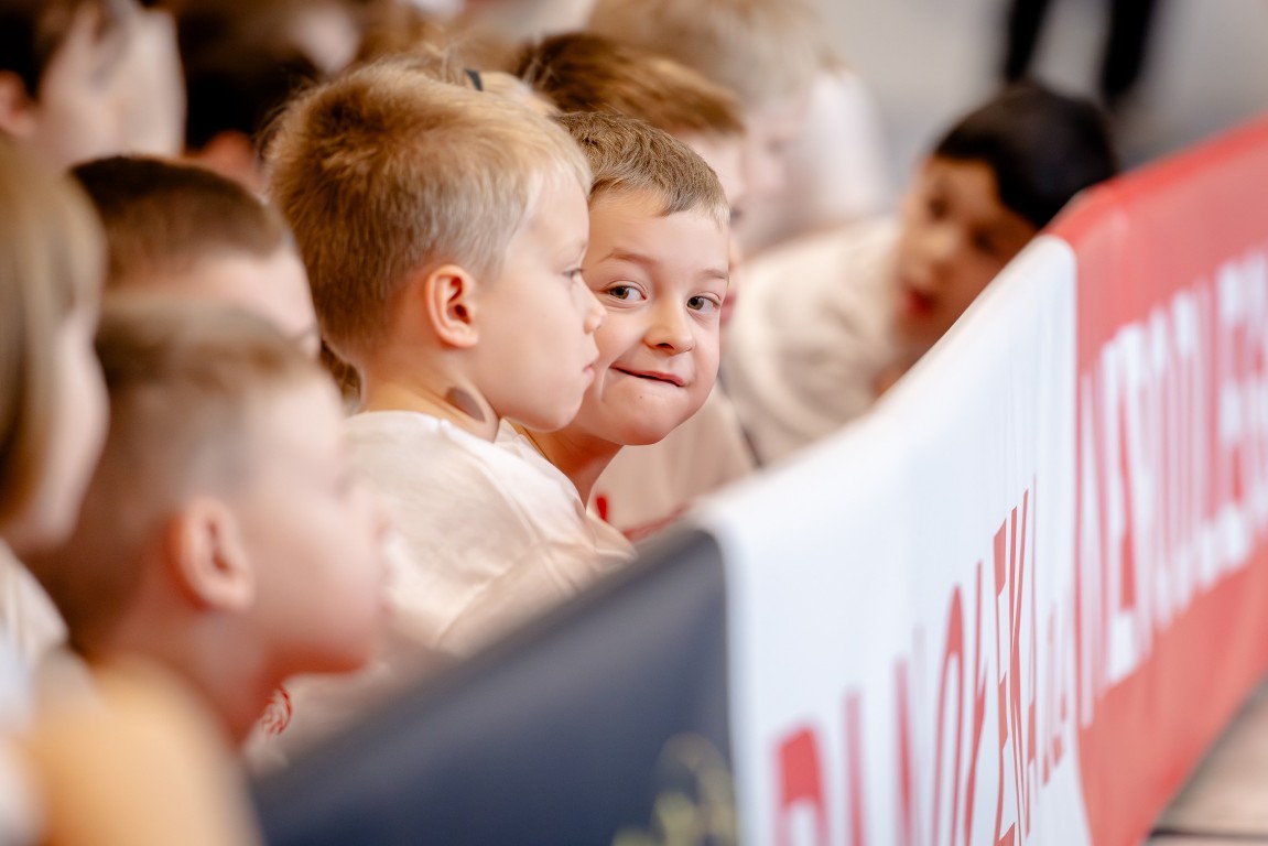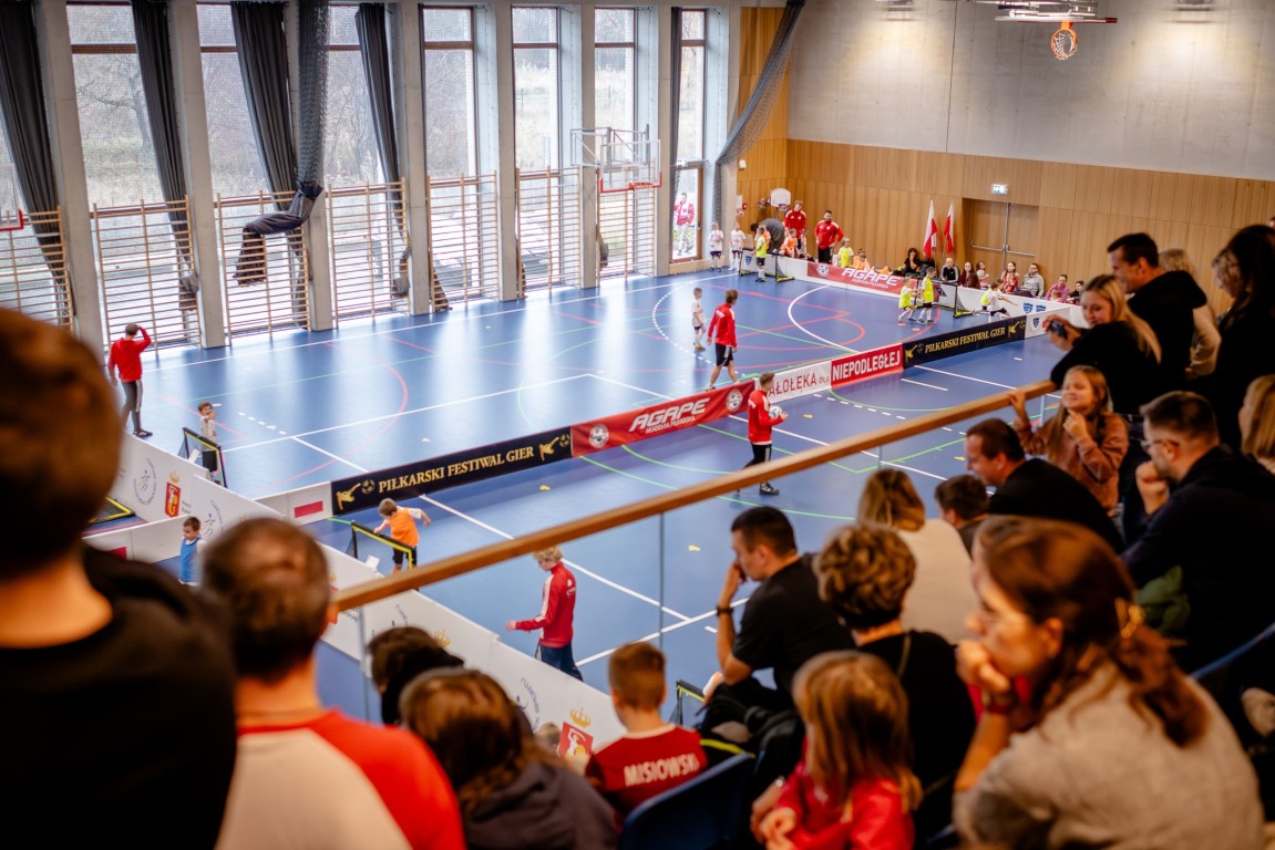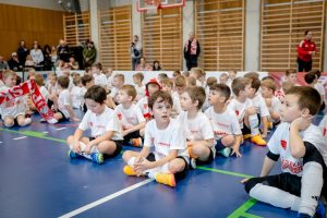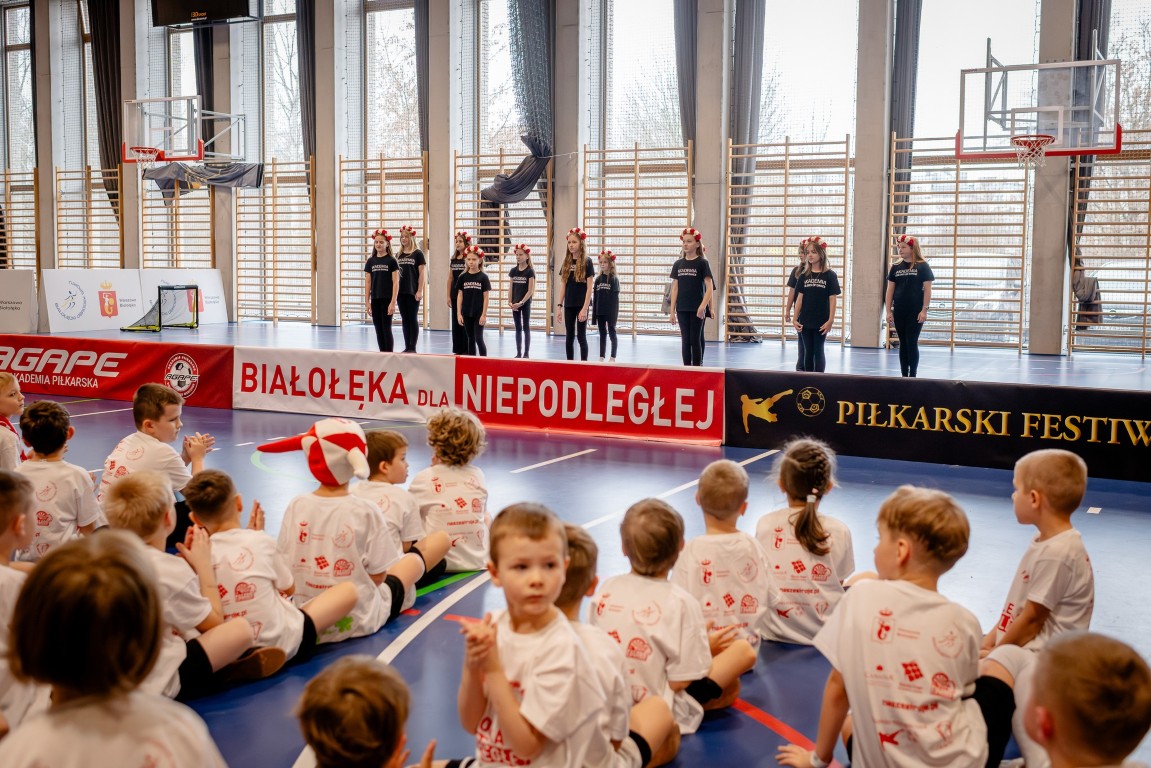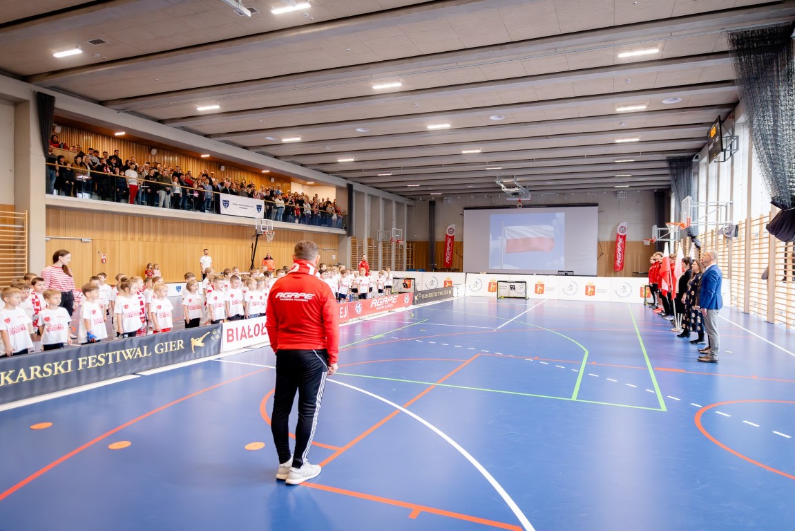 Kulminacyjnym momentem było wspólne, donośne odśpiewanie hymnu Polski – Mazurka Dąbrowskiego przez wszystkich uczestników Piłkarskiego Festiwalu Gier wraz z ich rodzicami. Atmosfera jedności i wzruszenie – bezcenne. ❤️🤍