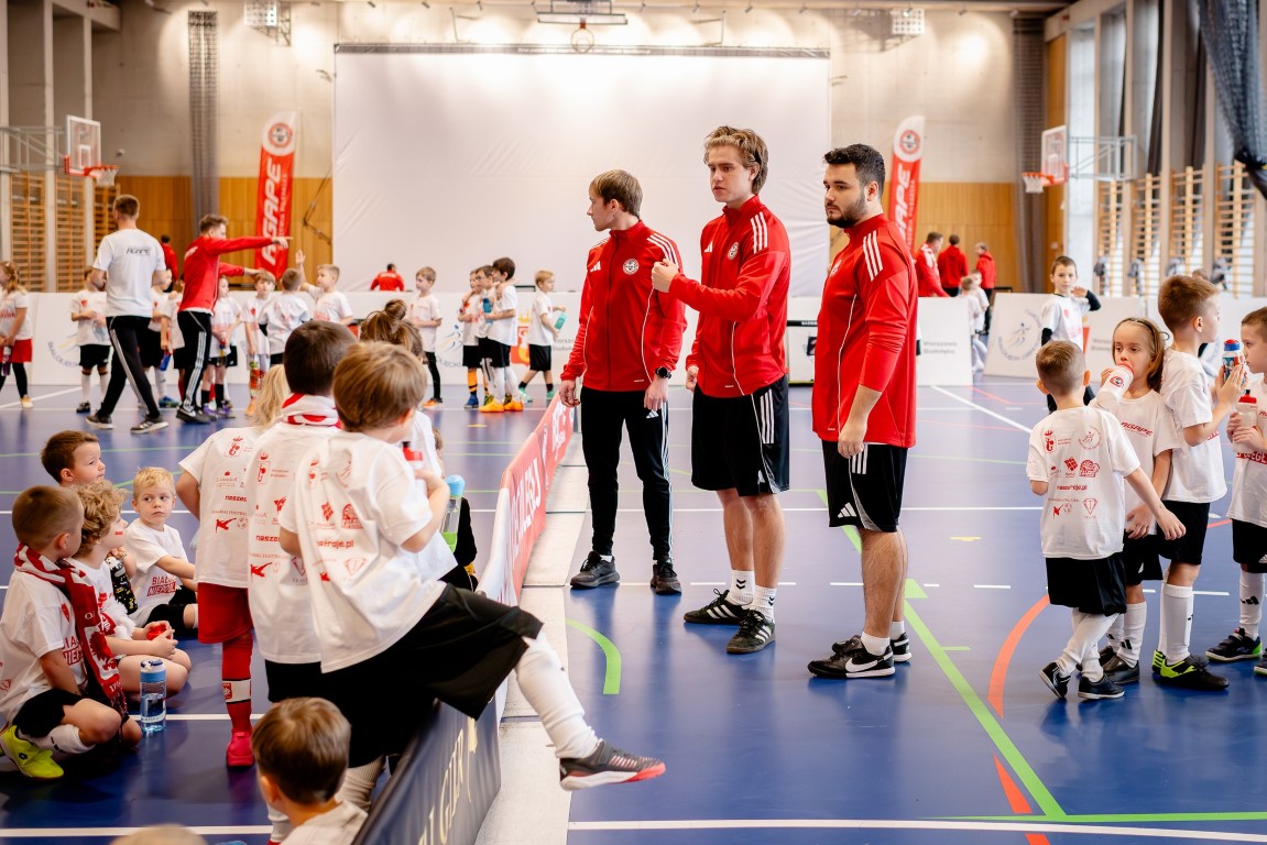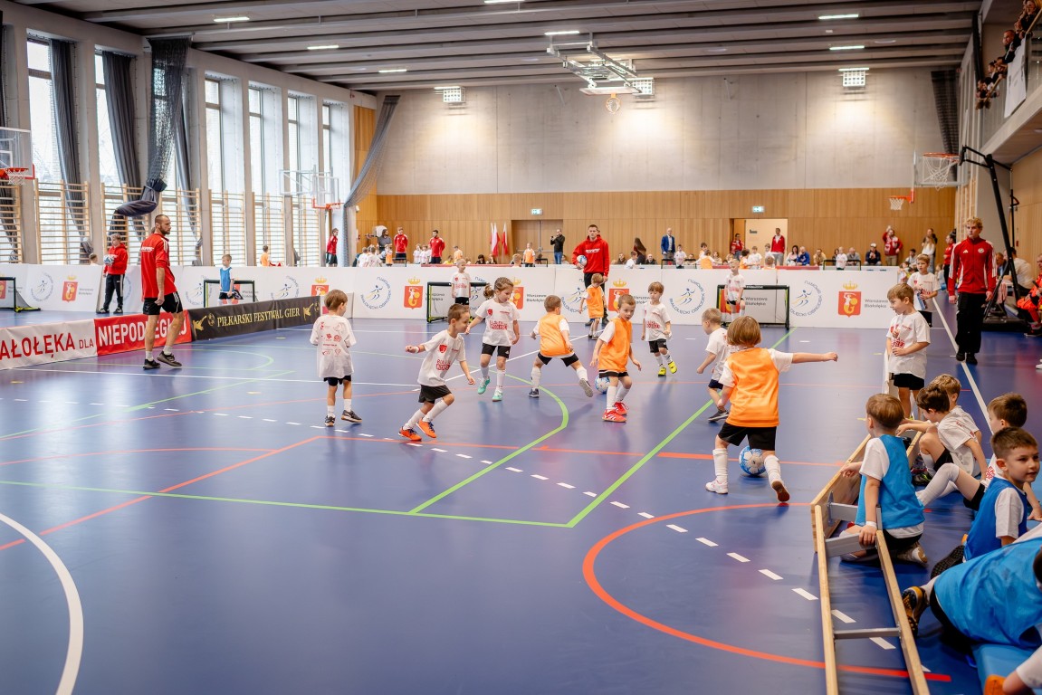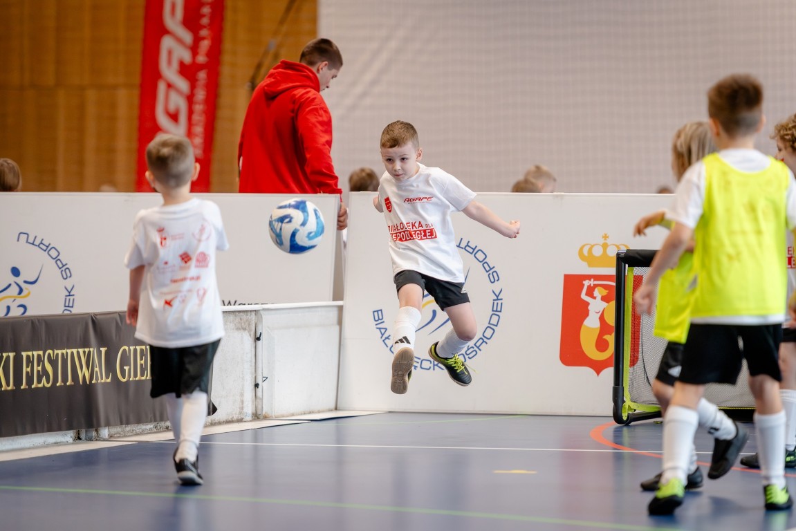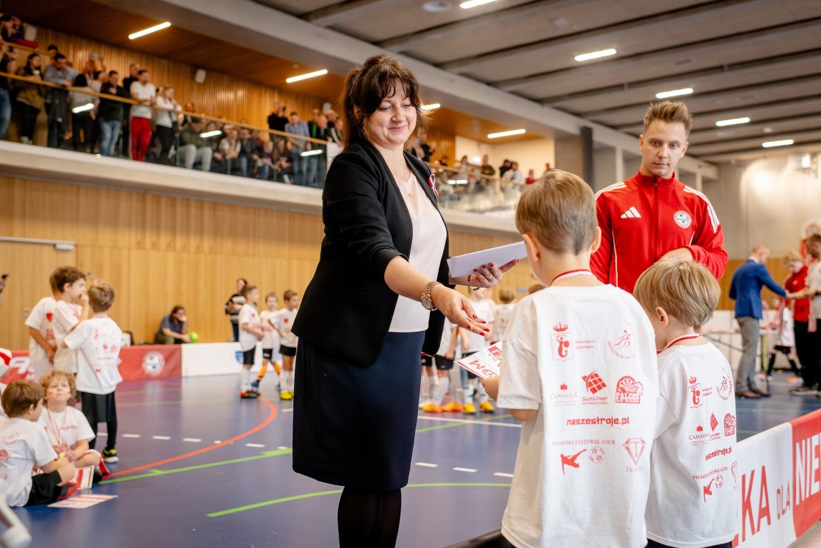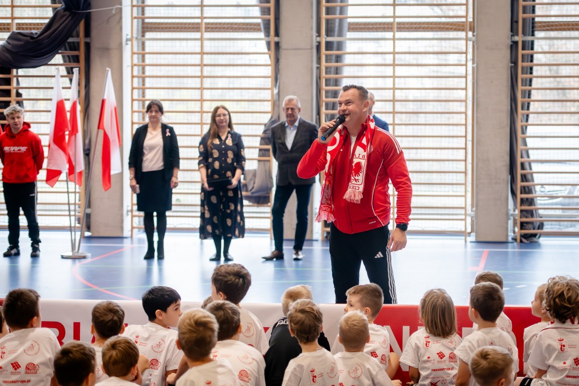 Kulminacyjnym momentem było wspólne, donośne odśpiewanie hymnu Polski – Mazurka Dąbrowskiego przez wszystkich uczestników Piłkarskiego Festiwalu Gier wraz z ich rodzicami. Atmosfera jedności i wzruszenie – bezcenne. ❤️🤍